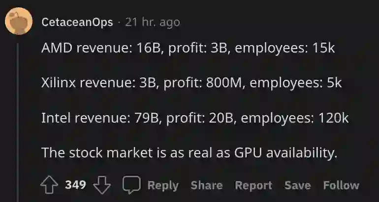 网友调侃道:「股票市场就像GPU的可用性一样真实。」
