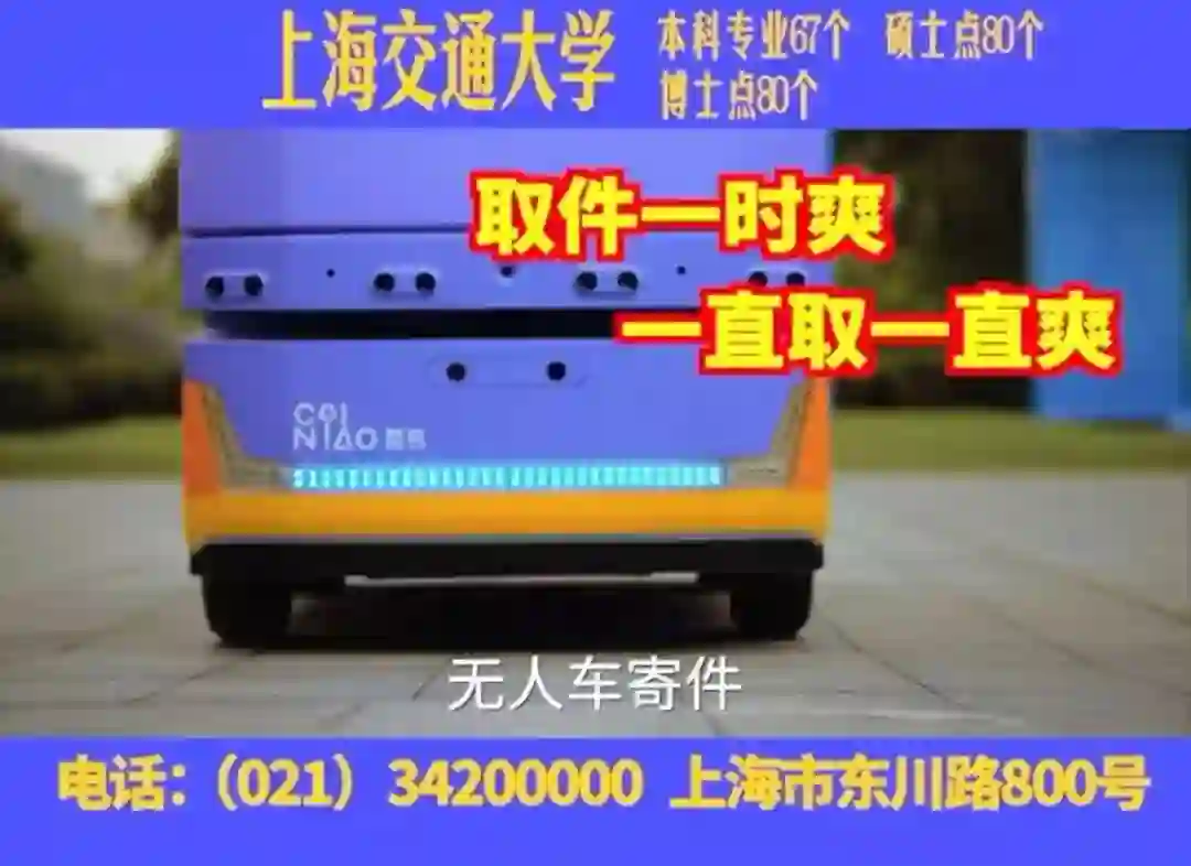 在快递最后 100 米,菜鸟驿站大量运用了数智化技术。一段上海交通大学的招生视频还将刷脸取件快递柜和无人车配送做进了学校介绍,作为师生在校体验的宣传点之一。