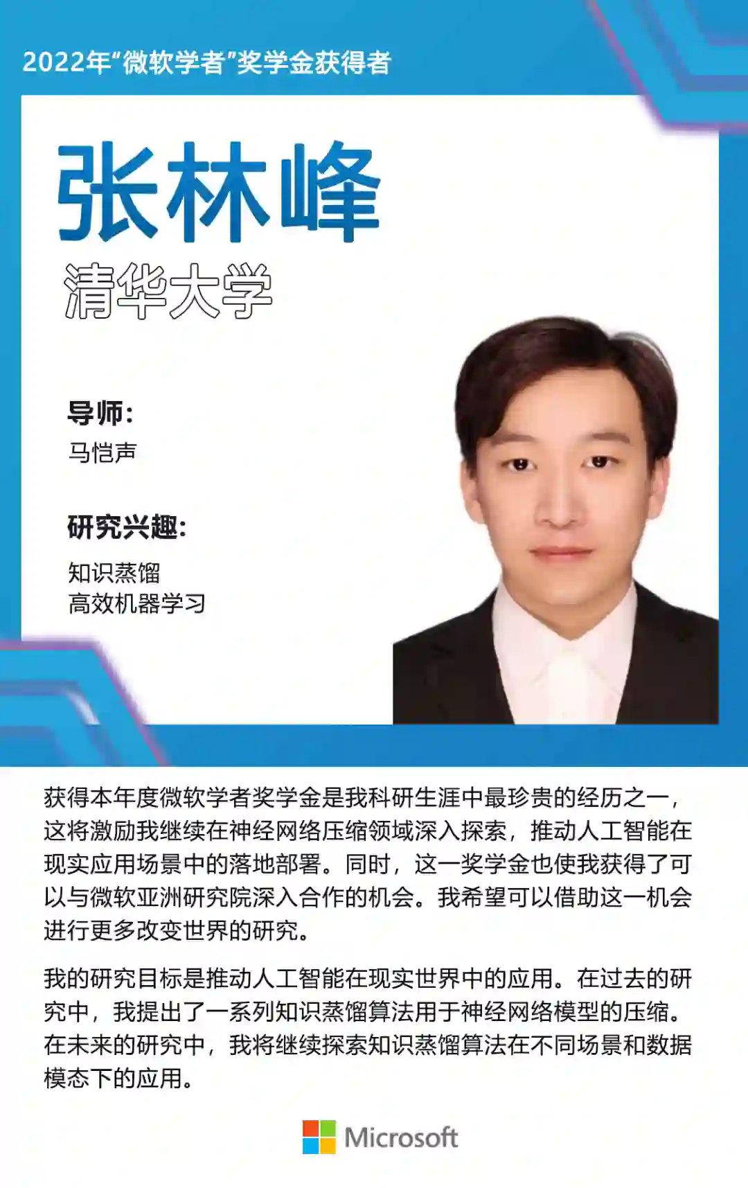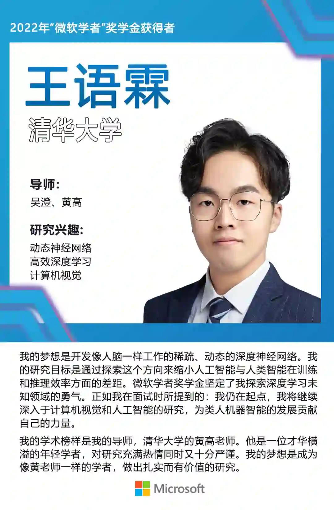 “微软学者” 奖学金是微软亚洲研究院1999年启动的一项面向亚太地区计算机科学以及相关专业和交叉学科的优秀博士生的项目。该奖学金项目旨在发掘、支持和鼓励优秀的、有潜力的低年级博士生更好地开展研究工作。截至2022年,已先后有数百名优秀的博士生获得“微软学者”称号。其中多位“微软学者”已经成为学术界中流砥柱或耀眼新星,也有多位“微软学者”成为工业界翘楚。