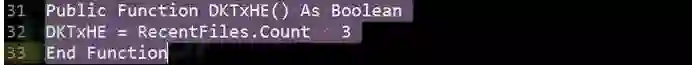 从DKTxHE函数功能可以看出,恶意软件以RecentFiles数量来判断是否身处VM环境中,如果在VM环境中,它将不会执行任何恶意行为。之后,随意创建了3个不同名称的word文档,逐一打开并关闭,让历史文档数量为3,最终成功运行并检测到了恶意软件。