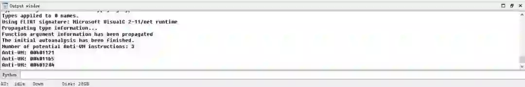 要在IDA PRO中运行脚本,选择File->Script File,可以看到下面的输出。