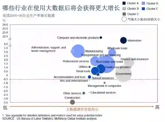 很多大数据的内容都提及了价值创造、竞争优势和生产率的提高。要利用大数据创造价值,主要有以下六种方式。