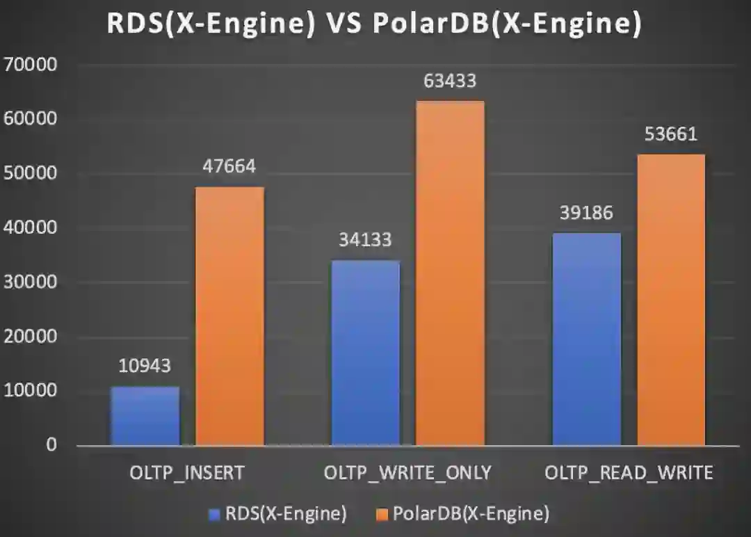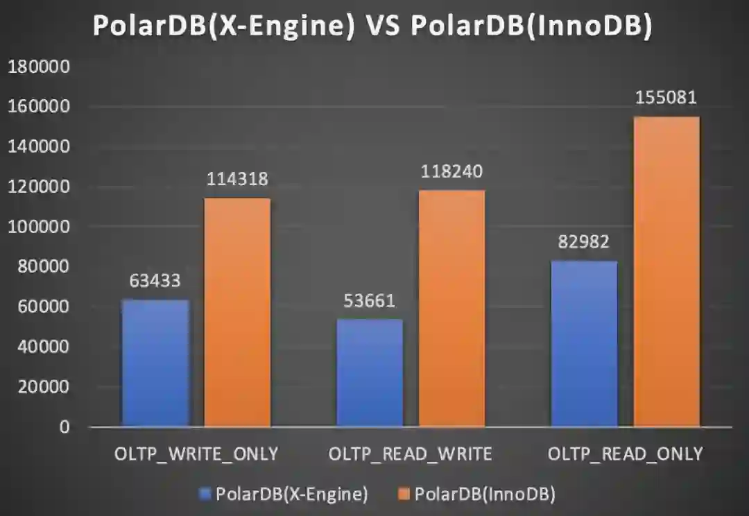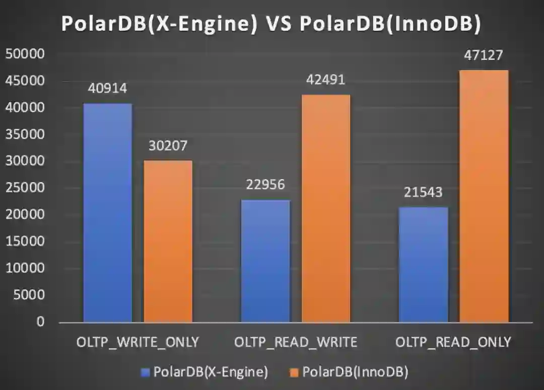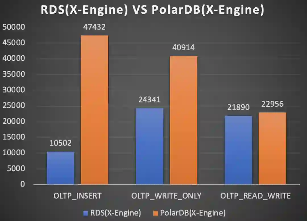基于X-Engine引擎实现一写多读能力后,我们采用基准测试工具sysbench对性能做了摸底,主要对比了RDS(X-Engine),PolarDB(X-Engine)以及PolarDB(InnoDB)的性能。