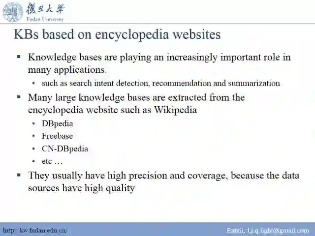 大家都知道,知识库在很多应用中都担任着非常重要的角色。有些知识库使用百科类网站(如:维基百科)作为数据源,像DBpedia、Freebase,CN-DBpedia等。由于百科类网站的质量都很高,所以在此基础上构建的百科知识图谱质量也很高。