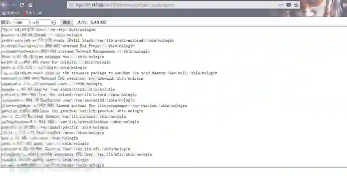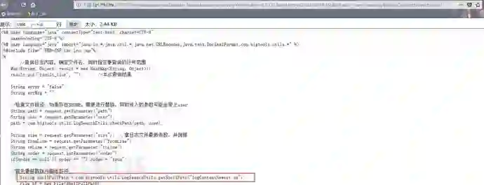logContentNewest.jsp正常执行是这样的,可自定义path参数的值,如/etc/passwd,来查找这个文件里面的内容: