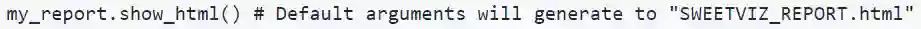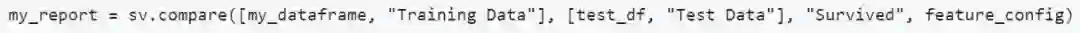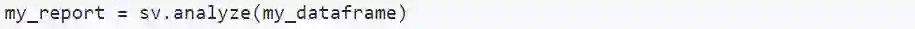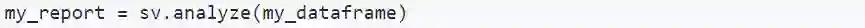 sweetviz使用的原理是,使用一行代码,生成一个数据报告的对象(其中,my_dataframe是pandas中的DataFrame,一种表格型数据结构):