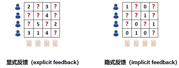 按照预测对象的不同,推荐系统一般可以分成两类:一类是评分预测(rating prediction),例如在电影类应用中,系统需要预测用户对电影的评分,并以此为根据推送其可能喜欢的电影。这种场景下的用户反馈信息表达了用户的喜好程度,因此这种信息也叫显式反馈(explicit feedback);另一类是点击率预测(click-through rateprediction),例如在新闻类应用中,系统需要预测用户点击某新闻的概率来优化推荐方案。这种场景下的用户反馈信息只能表达用户的行为特征(点击/未点击),而不能反映用户的喜爱程度,因此这种信息也叫隐式反馈(implicit feedback)。