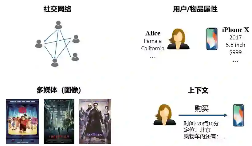 如何根据具体推荐场景的特点将各种辅助信息有效地融入推荐算法一直是推荐系统研究领域的热点和难点,如何从各种辅助信息中提取有效的特征也是推荐系统工程领域的核心问题。
