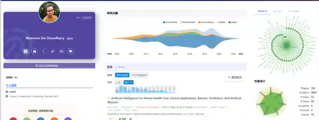AMiner 是一个提供海量中英文文献检索的 AI 搜索学术平台,由清华大学计算机系唐杰教授团队研发,拥有我国完全自主知识产权。作为国内首个 AI 学术搜索平台,包含了超过 2.6 亿学术论文/专利和 1.33 亿学者的知识图谱,为广大科研工作者提供方便、权威和具有认知智能的学术搜索服务。(网址:https://www.aminer.cn/)