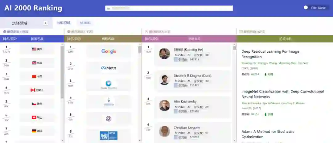 中国工程科技知识中心(简称:知识中心)是经国家批准建设的国家工程科技领域公益性、开放式的知识资源集成和服务平台建设项目,是国家信息化建设的重要组成部分。知识中心建设以满足国家经济科技发展需要为总体目标,通过汇聚和整合我国工程科技相关领域的数据资源,以资源为基础、技术为支撑、专家为骨干、需求为牵引,建立集中管理、分布运维的知识中心服务平台,服务国家高端智库建设和我国工程科技创新。(网址:http://www.ckcest.cn/)*最新完整 AI 2000 榜单已在 AMiner 平台官网发布,专题页面地址:www.aminer.cn/ai2000