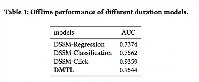 DSSM-Click:表明了click对于duration的重要性。但它没学到duration方面的知识,因此比 DMTL还差了点。