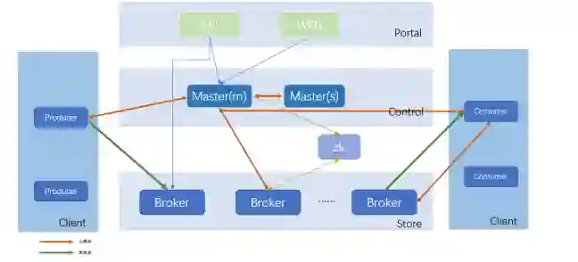 (GitHub地址:https://GitHub.com/Tencent/TubeMQ/)是腾讯自研的分布式消息中间件系统(MQ),其擅长进行海量数据的存储和传输,相较其它主流MQ组件,TubeMQ所经历的考验可谓是最多的,毕竟最高日交易量33万亿的数据摆在这里,笔者相信在TubeMQ今后会迅速取代Kafka成为MQ软件系的新C位。其架构图如下: