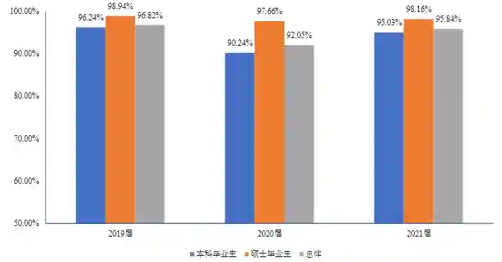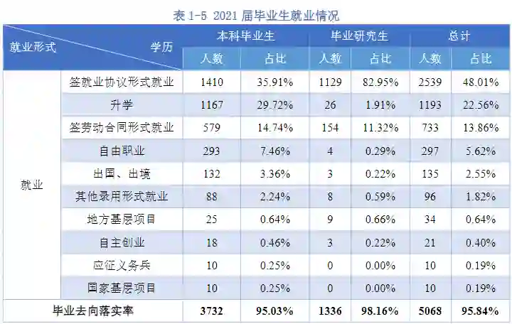 林林总总的方式加起来,本科生毕业去向落实率达到95.03%,研究生毕业去向落实率达到98.16%。