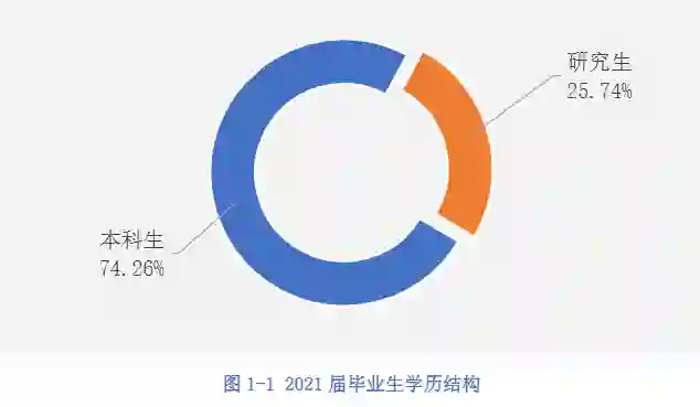 杭电官网放出了2021年毕业生的就业质量报告。数据显示,2021年,杭电一共5288名毕业生走出校园,其中3927名本科生,1361名研究生。占比如下图: