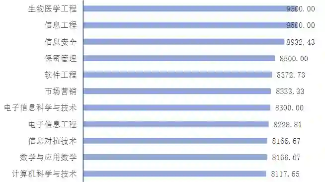 不难发现,生物医学工程和信息工程的毕业生拿到了最高的薪资,达到了9500元。