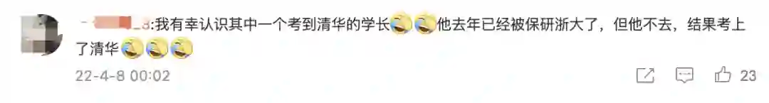 「我有幸认识其中一个考到清华的学长,他去年已经被保研浙大了,但他不去,结果考上了清华。」