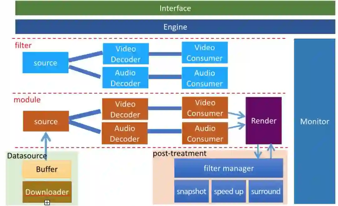 但是,跨团队协作及长时间的迭代,也使得当前播放内核显得有些“臃肿”。占用内存过高、使用线程太多等这些问题除了会影响用户的体验之外,也在一定程度上制约了一些业务的实现,例如针对短视频的多实例方案。所以,急需对内核各模块进行一次“轻量化”的改造。目标是: