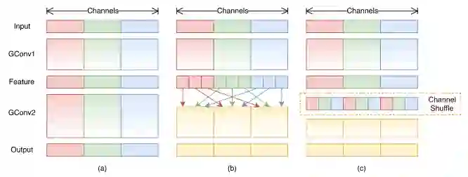 作者提高了卷积网络的效率,模型在使用更少的参数的情况下,实现了相同的分类性能,方法是:(1)group-wise 卷积和(2)通过 channel-shuffle 在这些 group 之间共享特征。