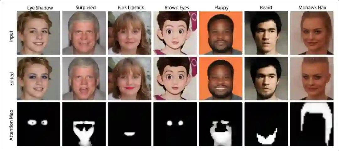 在过去的几年中,已经有很多人尝试创建交互式脸部编辑模型,用户可以通过滑块或者其他传统的用户界面交互来改变图片的脸部特征,并且在进行添加或改变面部特征时保持目标人脸的核心特征不变。