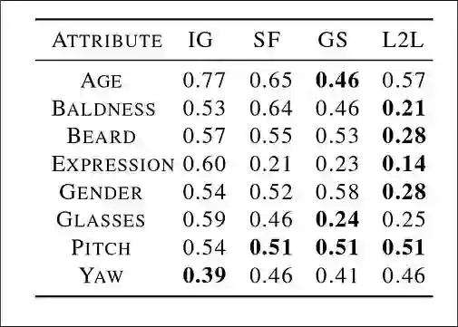 分布外(Out-of-distribution, OOD)的图像被过滤掉,并使用微软的人脸API提取属性,所得的图像集被分成90/10,剩下72万张训练图像和7.2万张测试图像进行对比。