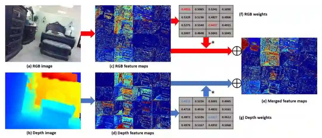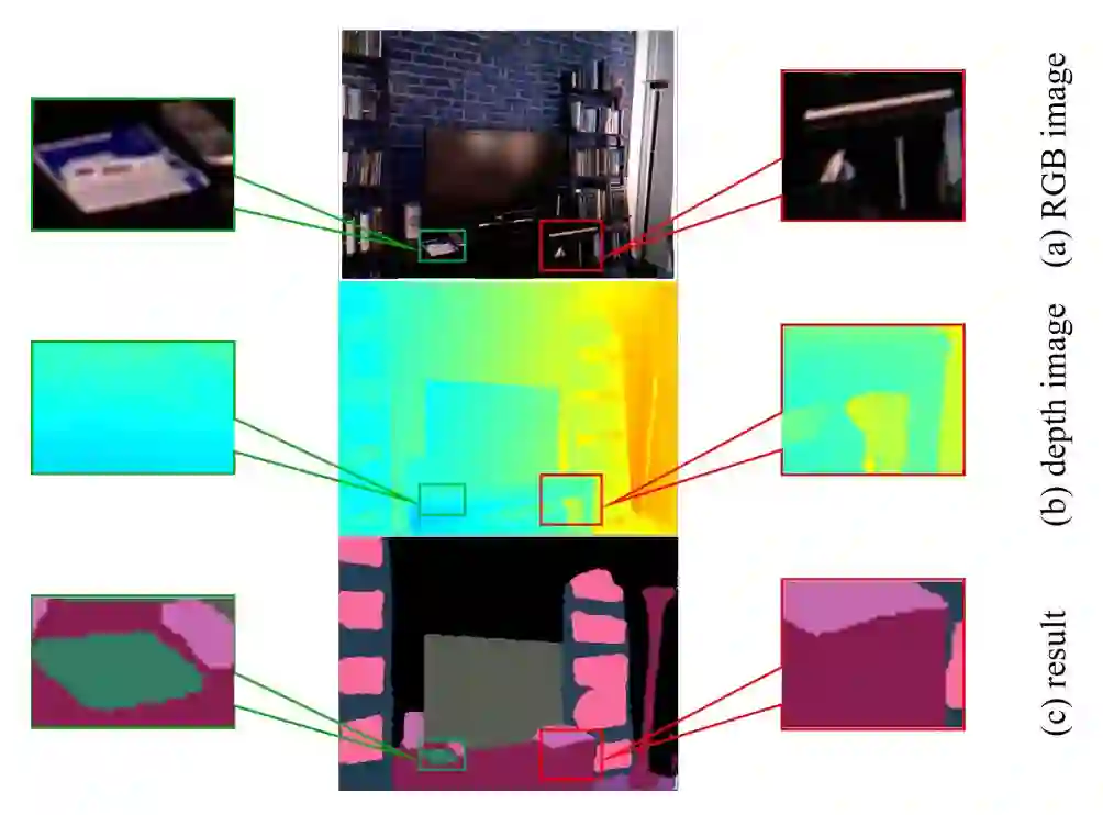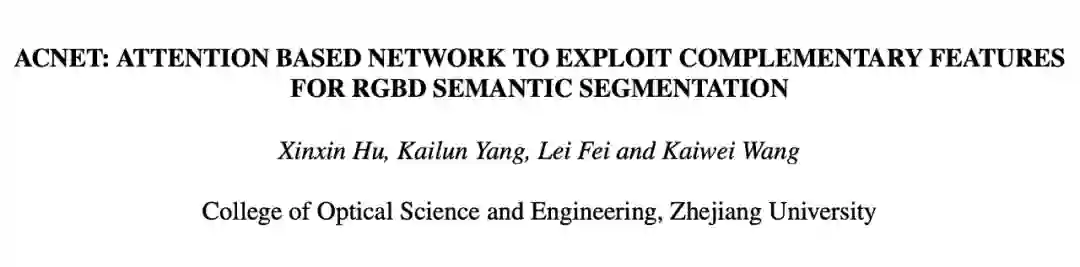 本文已经被 ICIP 2019 (2019 IEEE International Conference on Image Processing) 接收,论文提出了一种全新的方法,基于时下流行的注意力机制,用于室内场景下的 RGBD 图像语义分割——通过利用图像深度信息,获得更好的语义分割效果,在包含 40 个类别的复杂室内场景通用数据集 NYUDv2 上取得了 SOTA 效果,mIoU 达到了 48.3%,论文主要的贡献在于注意力辅助模块和三平行分支的网络架构。