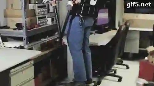开发者对于这款装置的另外一个使用灵感来自于清洁工擦窗户的场景。很多清洁工一般用一只手抓住房梁来保证自己身体的平稳,另一只手用来擦窗户。在这种场景下,开发人员将背包的手臂设计成可以移到下端钩住固定的梁,这样人就可以空出两只手来擦玻璃了。