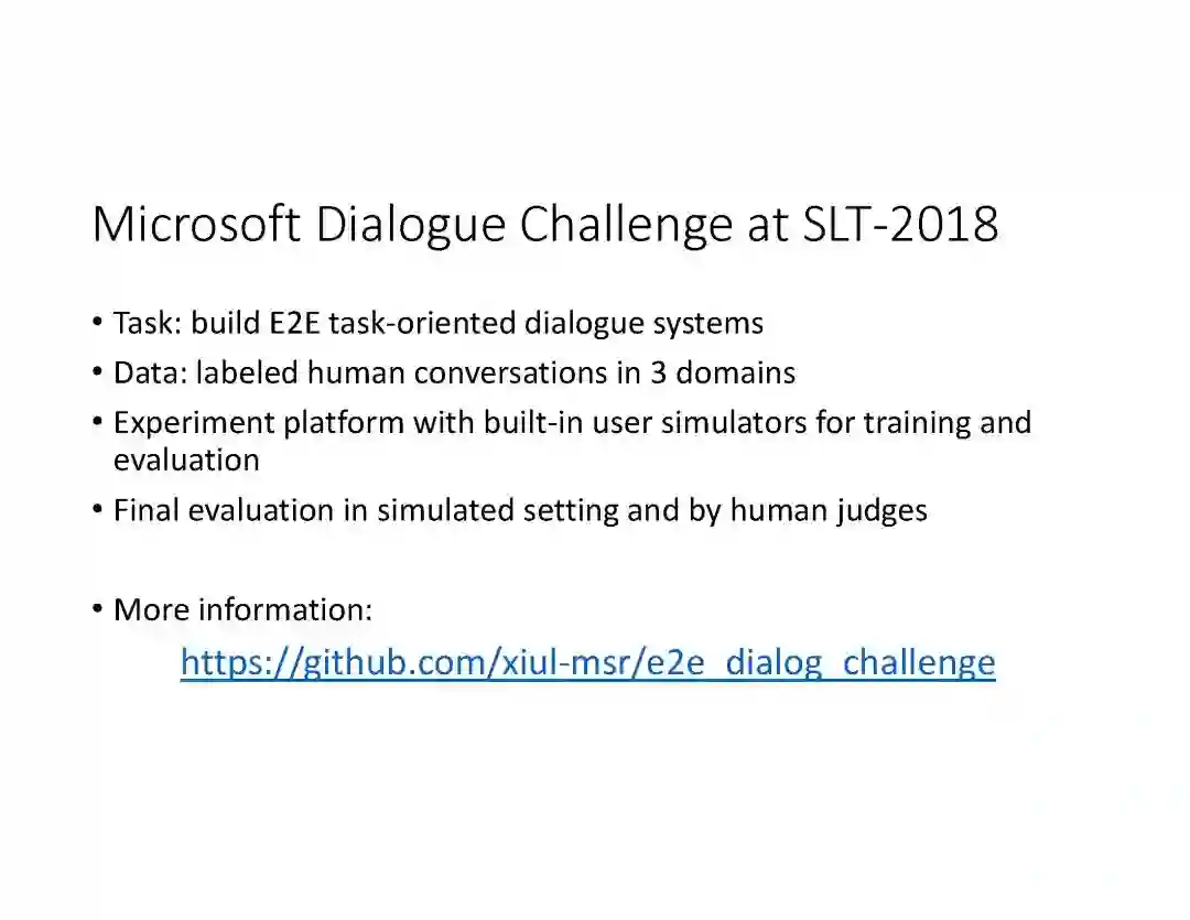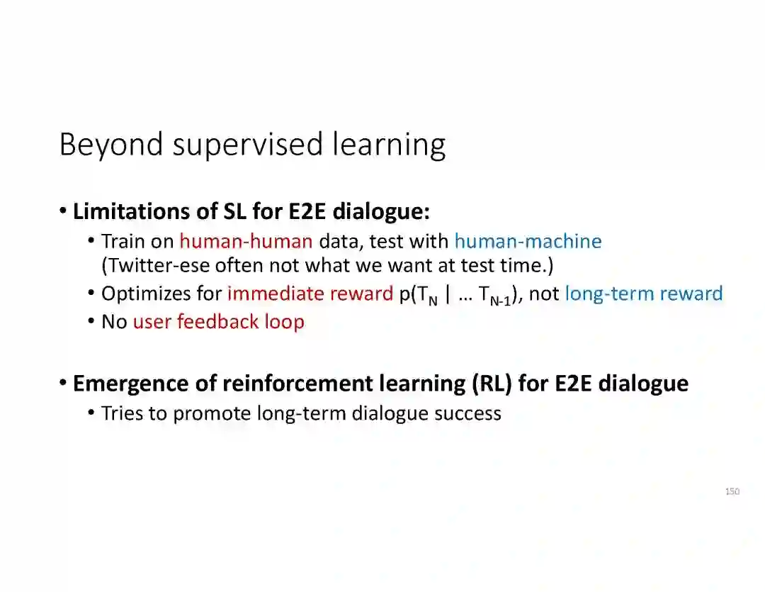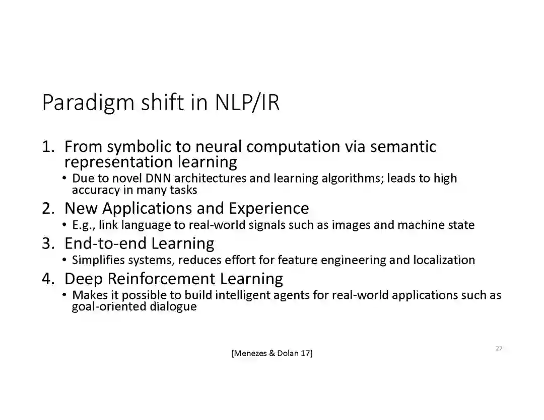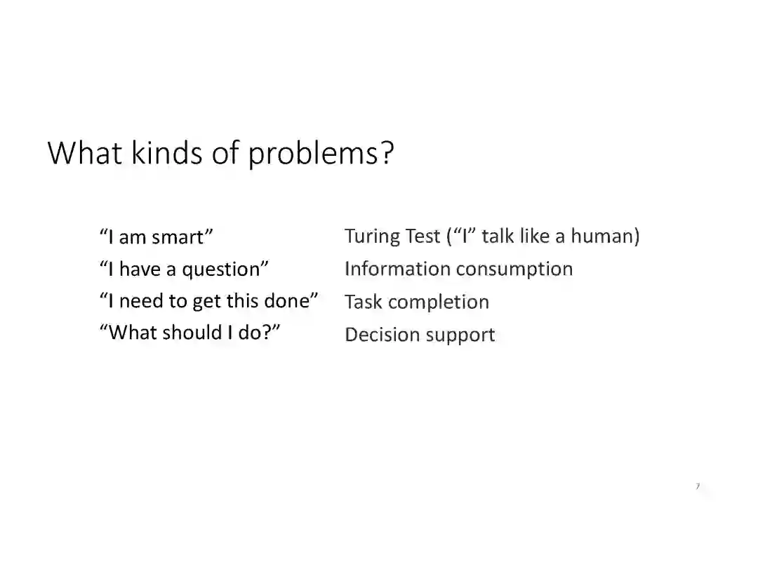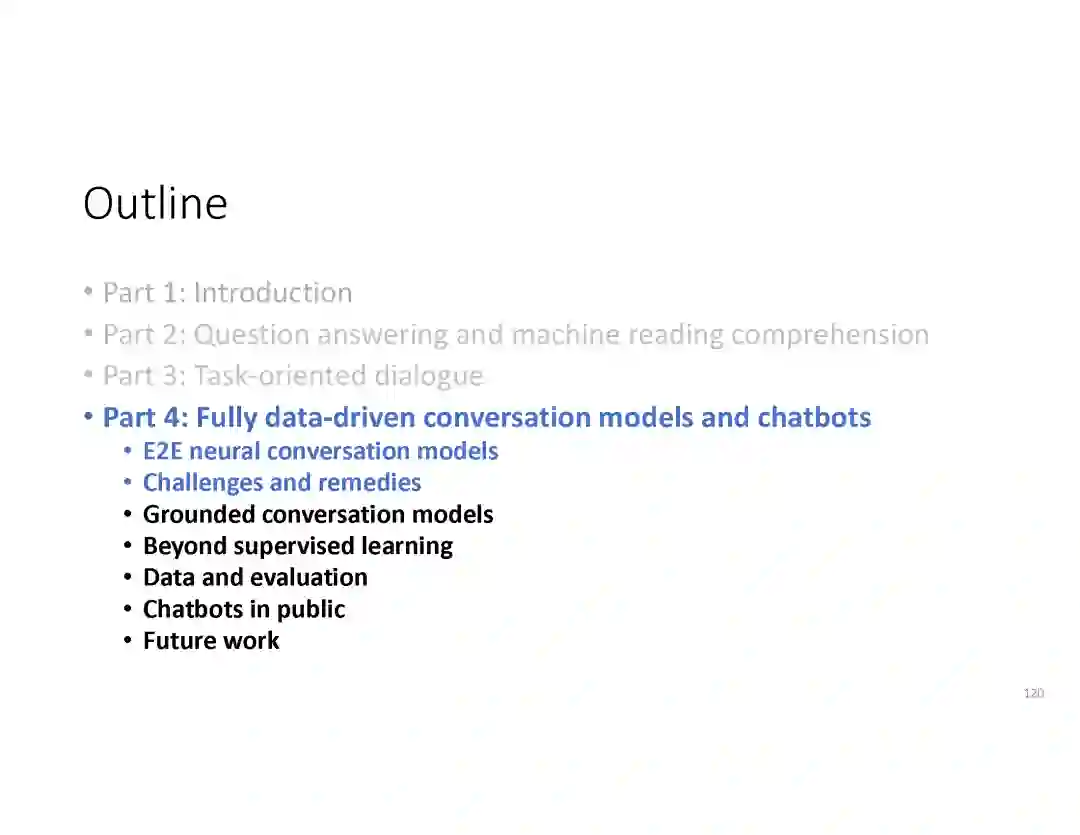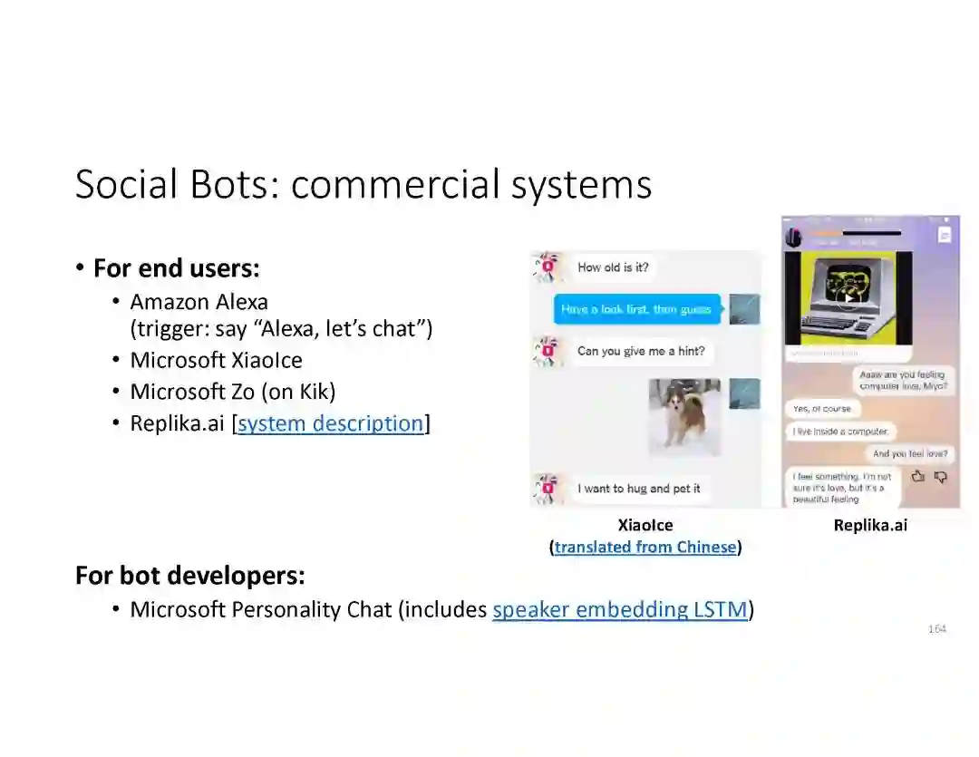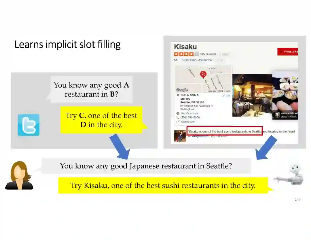 在这个PPT中,他们首先介绍与自然语言处理和对话人工智能相关的深度学习和增强学习的最新进展。然后,详细地描述了为实现三种对话系统而开发的最先进的神经网络方法。
