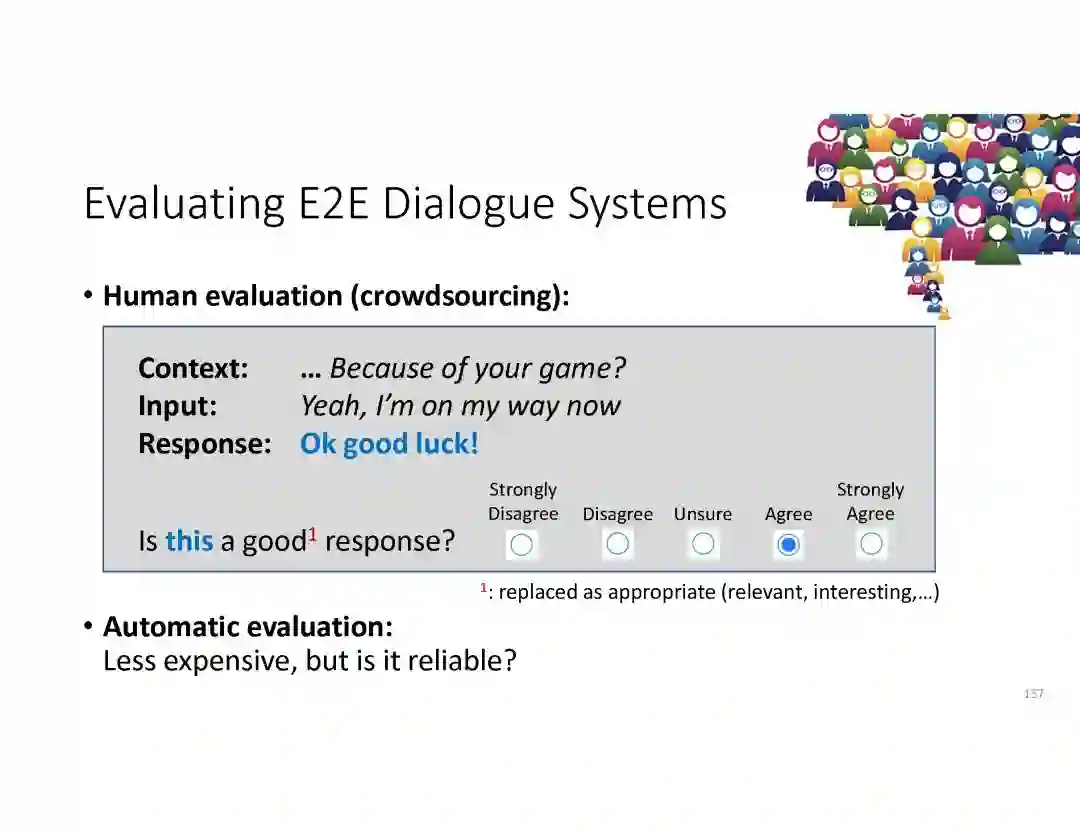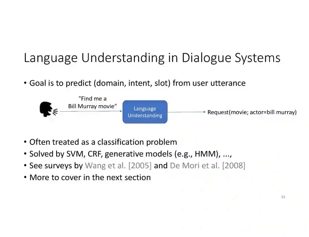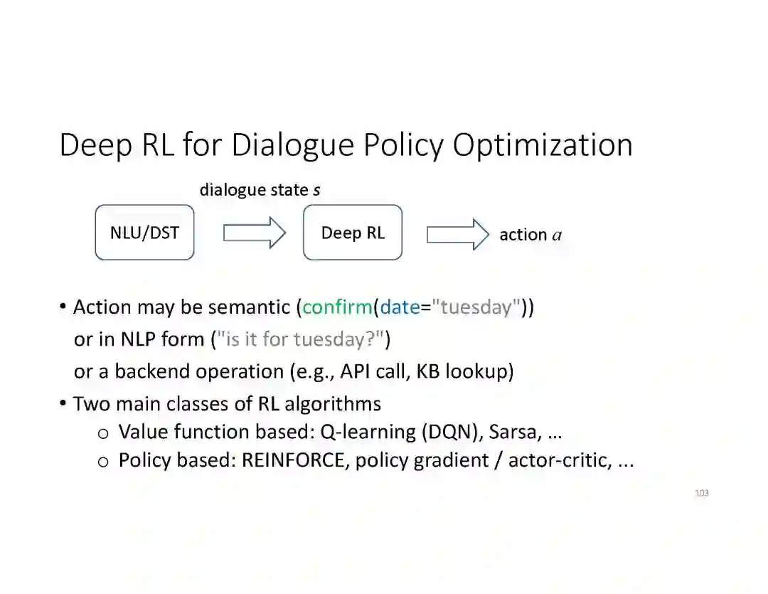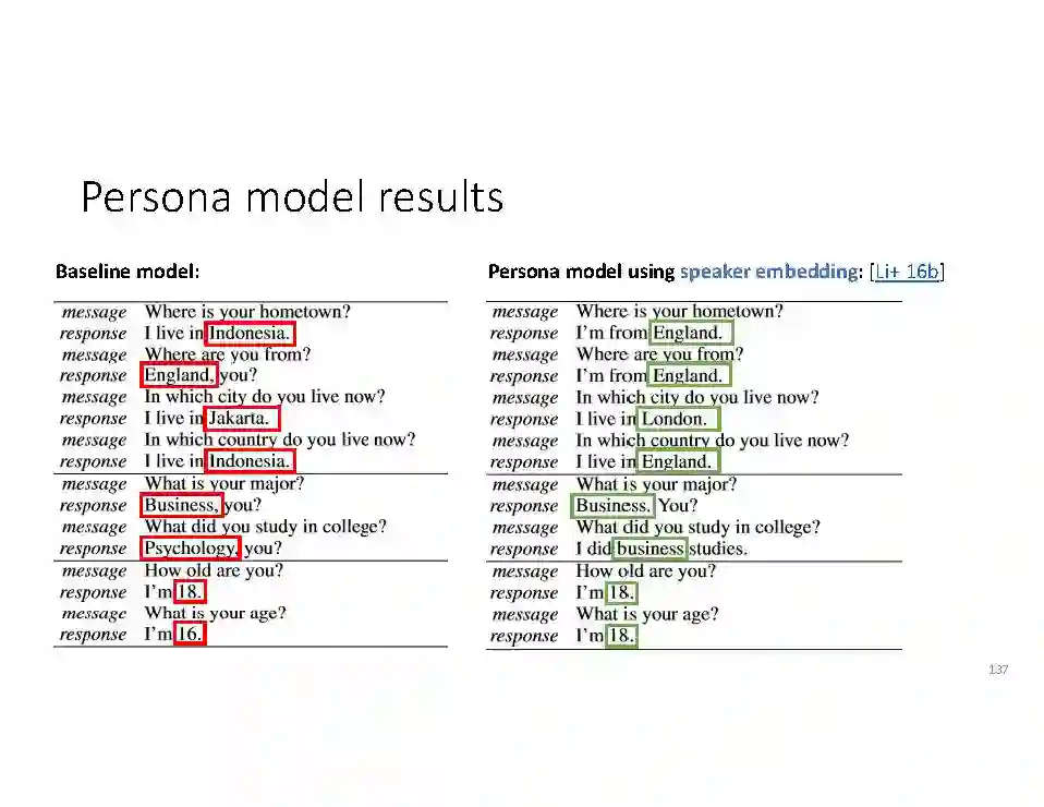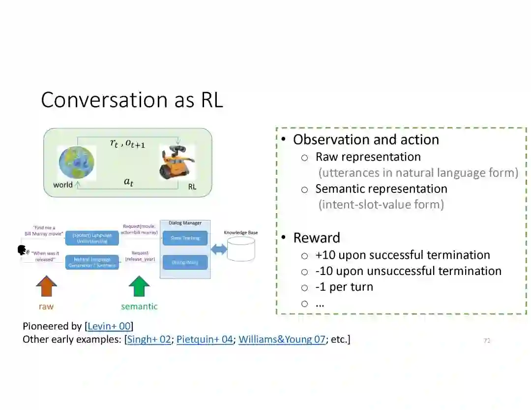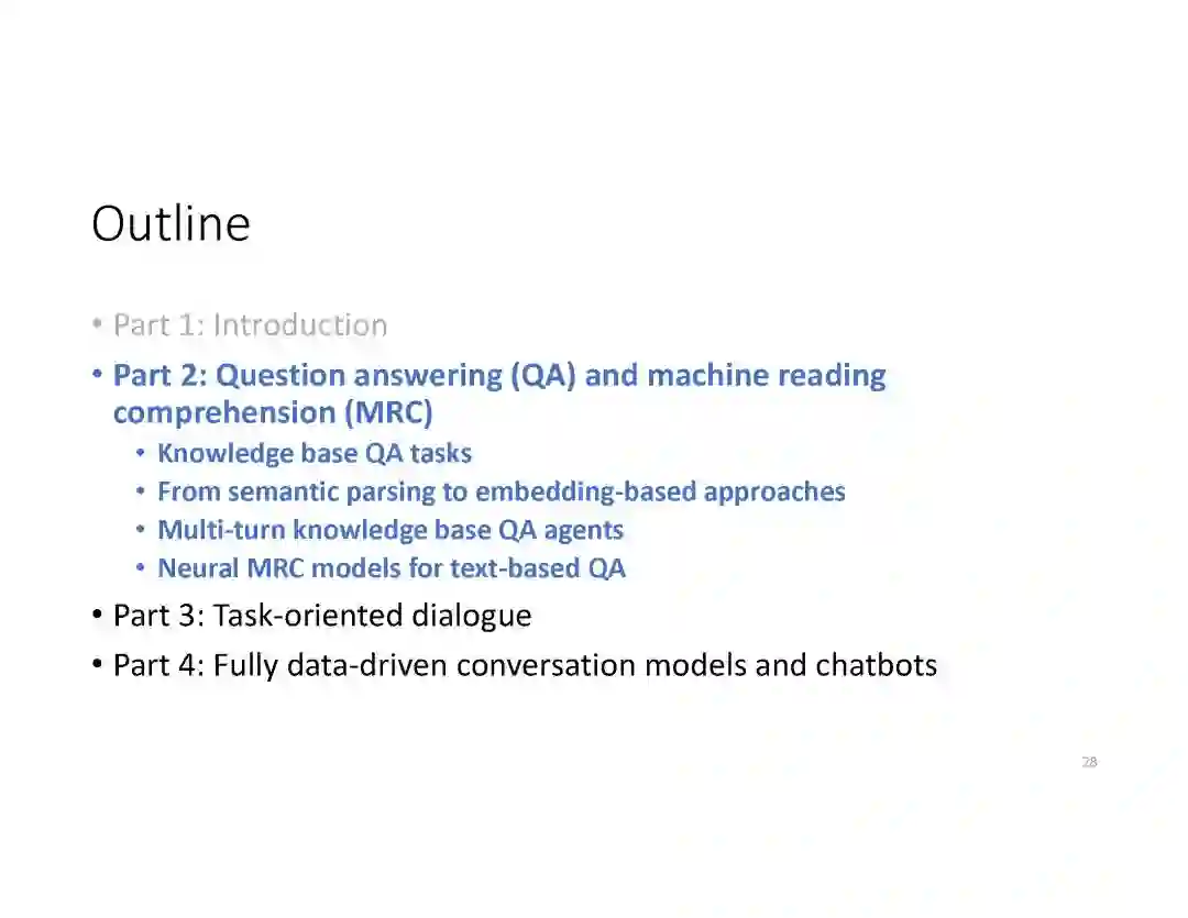 在这个PPT中,他们首先介绍与自然语言处理和对话人工智能相关的深度学习和增强学习的最新进展。然后,详细地描述了为实现三种对话系统而开发的最先进的神经网络方法。