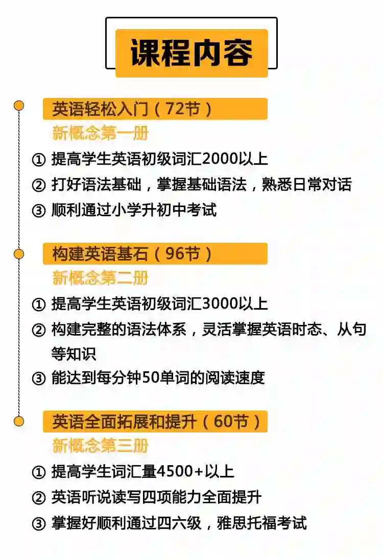 第一册是练好英语基本功的关键,适合于英语零基础或基础差的学生。掌握后,词汇量 2000 以上,可以参加小升初、中考等考试。
