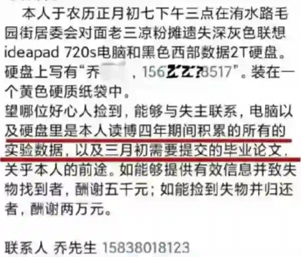 近日,河南一博士生 “花2万酬金急寻丢失电脑及数据硬盘” 引发网络热议。