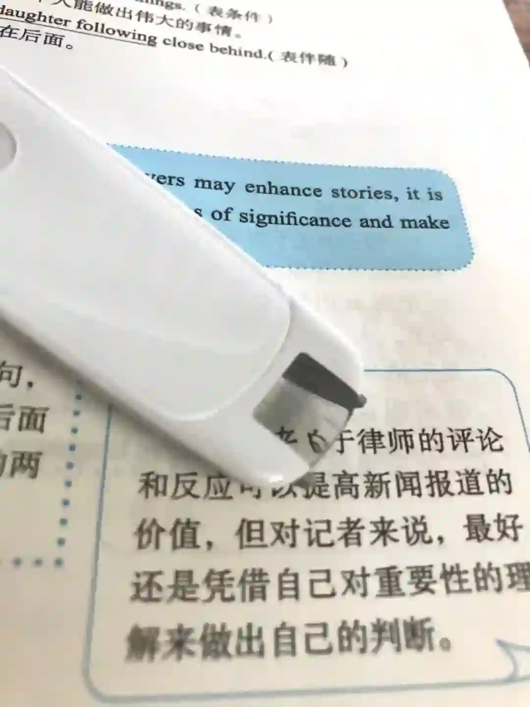在长难句中,网易有道词典笔可能就显的并没有那么多从容了,是因为无法全段扫描的原因,使我在日常使用中只能断句进行扫描,就可能在后期联系在一起时,翻译的结果会有一些突兀和不协调,间接的就增加了我的后期学习成本。但是据官方消息透露,在 9 月初期,系统就会更新整段扫描,到那个时候,我想它的易用性就会大大的增加。