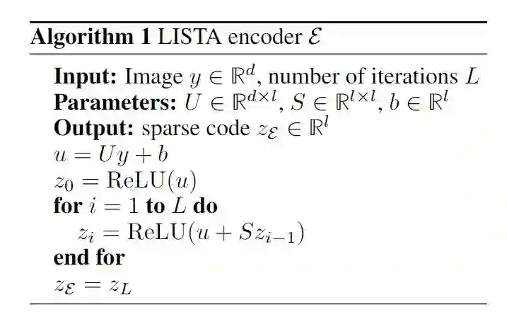 给定一个输入y和一个固定的解码器D,研究人员使用FISTA算法(近似梯度方法ISTA的快速版)进行推理来找到一个稀疏编码z*,得到的z*可以使用D中的元素最好地重建输入y。