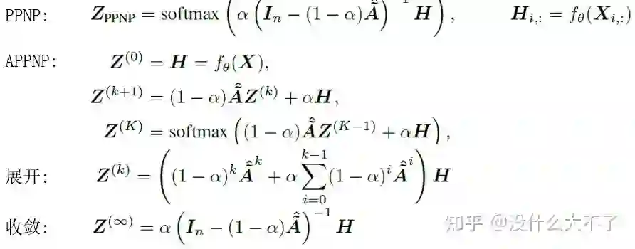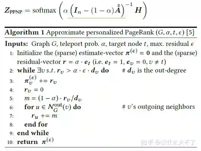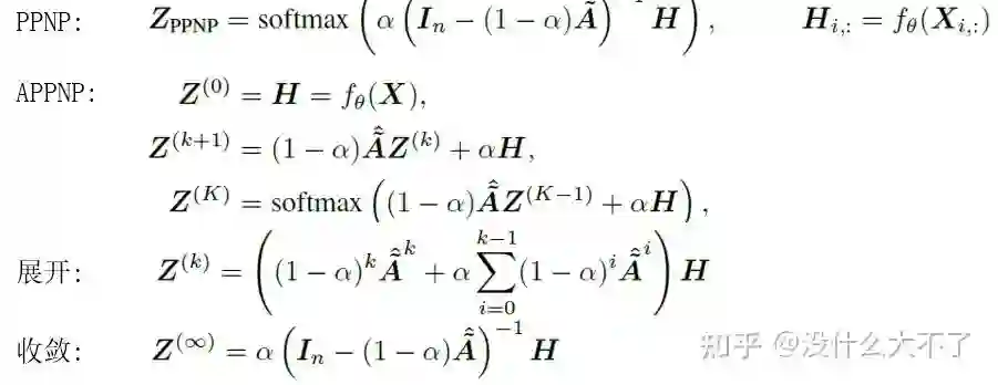 PPNP[13]:同样采用消息传递和特征变换分离的结构,并基于个性化PageRank改进消息传递,使模型可以平衡局部和全局信息。