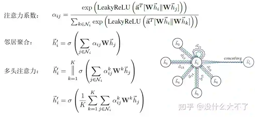 GAT[12]:将注意力机制引入GCN,建模了邻居结点的重要性差异,增强了模型的表达能力。