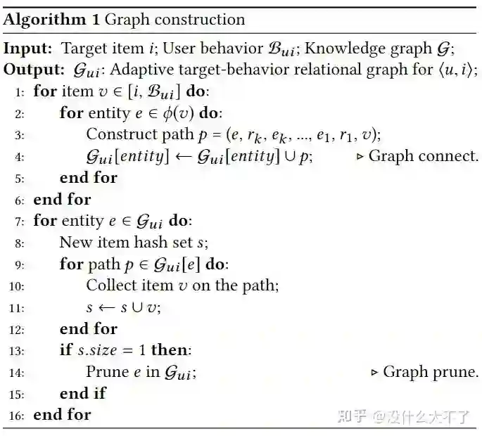 采样方法:从Target Item和用户行为过的Items构成的Root Nodes合集中,分别为每个结点在图中采样K-Hop邻居,根据采样的结点集合从原图中诱导出子图(区别于独立采样,可以建立Target Item与行为过的相关的Item的联系),对于该子图中只有一个邻居的结点进行剪枝(这些结点很可能是噪声)。