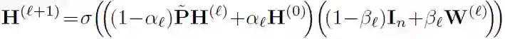 GCNII[20]:除了使用个性化PageRank改进消息传递,还引入了Residual Connections保持恒等映射的能力。