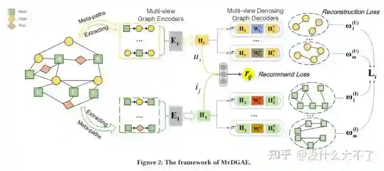 采样方法:分为两个阶段,Encoder阶段基于Meta-Path(首尾不限) Node-Wise采样,Decoder阶段基于特定的Meta-Path(首尾相同)采样出User-User和Item-Item子图,每个Meta-Path对应一个View。Multi-view Graph Encoders