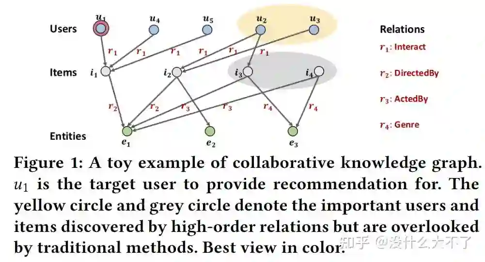 问题背景:已有的工作大多利用社交网络或共现关联分别为User-Item二分图中的Users和Items扩充内部连接,却忽略了属性关联这一类丰富的信息。