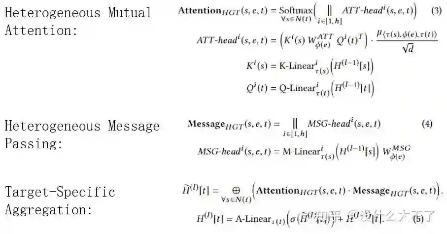 HGT[29]:在Attention计算和Message Passing阶段都考虑到了对异构性的建模,分别使用Node-Type-Specific Transformation和Edge-Type-Specific Transformation建模结点和边的异构性(不过这参数量相当大呀)。
