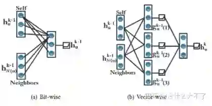 公式(3)对公式(2)进行了简化(时间复杂度和模型参数量都有所降低),在vector-wise的层次以不同重要性融合自身和邻居信息,并且通过多组融合操作得到不同角度的信息(类似多个不同的卷积核),最终再进行一次加权融合。