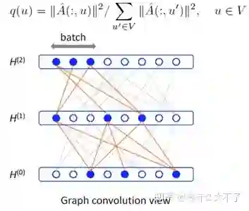 Layer-Wise Sampling[21]:由FastGCN首次提出,对于每一层都采样固定数量的结点,最终采样的结点数量与层数成线性关系;同时分析了采样带来的偏差与方差(做了大量简化),确保采样方法尽可能无偏有效。但是,该方法采样到的结点连接非常稀疏,不利于进行有效地消息传递,实际上实验效果也确实比较差。