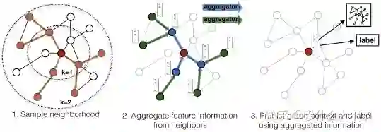 在第一部分已经介绍了一些常用的GNN模型,这里我们进一步将GNN抽象为两个步骤:邻居聚合和表征融合。在应用GNN到推荐系统时,主要从异构建模和特征交互两个角度改进模型,Attention机制和Layer Aggregation贯穿其中。