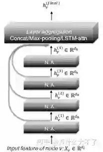 JKNet[6]:GCN的第K层包含了K-Hop范围的邻居信息,只使用最后一层的输出存在过平滑问题,因此JKNet保留了每一层的输出结果,最后综合融合不同范围的邻居信息。