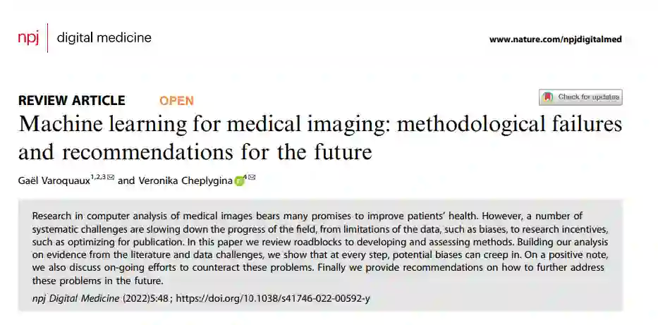 后台回复“mlmi” 就可以获取《【NPJ|数字医药】医学影像的机器学习:方法学的失败和对未来的建议》专知下载链接