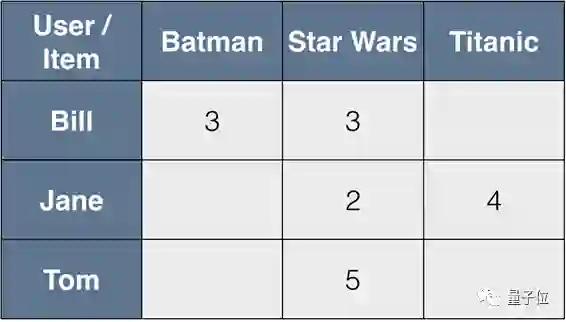 例如我们想比较Bill和Jane,已知比尔没有看泰坦尼克号,Jane没看过蝙蝠侠,于是,我们只能通过星战来衡量他们的相似度了。谁没看过星球大战呢是吧?