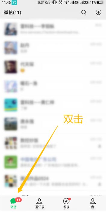 只需双击左下角,微信会自动跳转到未读消息处,再也不用傻乎乎的翻聊天窗口了,十分方便。