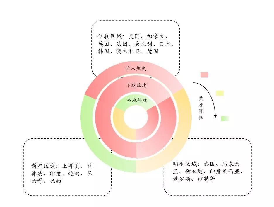 (移动游戏出海三类热点国家和地区 来源:腾讯研究院)