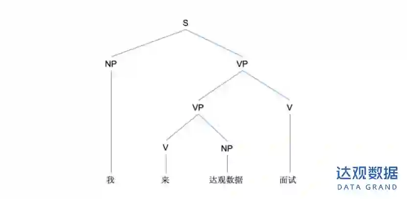 好了,介绍完了背景知识,我们的任务就是给定一个句法规则的集合,对于任意一个句子,将它按照这个句法规则集合进行解析。下图就是我们的一个句法解析树,也就是最终的一个结果。
