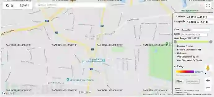 它包含wifi的wifi凭证,用于设置设备(或测试它)。绝对不是公司的无线网络。当我们想要找到与wifi名称相关的位置时,我们该怎么办?我们去wigle.net,输入SSID(= wifi名称),它会告诉我们在世界的哪个地方可以找到它。