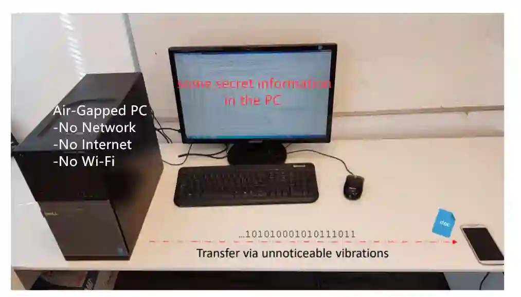 如果攻击者可以物理访问未连接互联网的电脑或内网,他们只需要将自己的智能手机放在电脑桌上,无需接触被攻击的电脑就能收集到所需的震动;